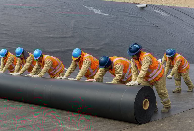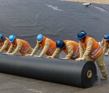 Servicio de instalación de geosintéticos mediante personal altamente calificado y cumpliendo estrictos controles de seguridad y calidad.