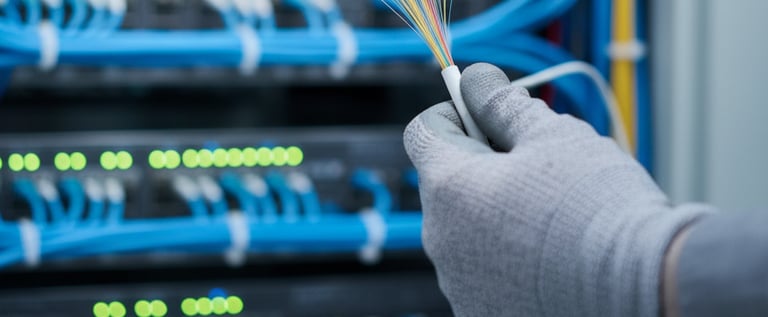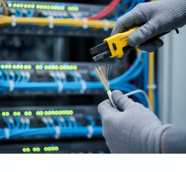 Instalación de fibra óptica para equipos de telecomunicaciones.